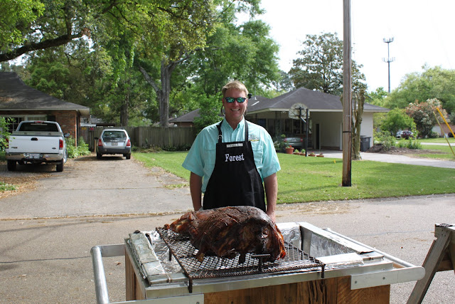 We recently had our first "Between the Ardenwoods" block party. Forest cooked a pig in the "cajun microwave" and I made a really yummy summer drink called a Junebug. All of our neighbors brought their specialties. We had everything from pasta salads to burgers to flan. We also had a jump jump for the kiddos. Most importantly, we all got to know each other a little better and can't wait to do it again next year.